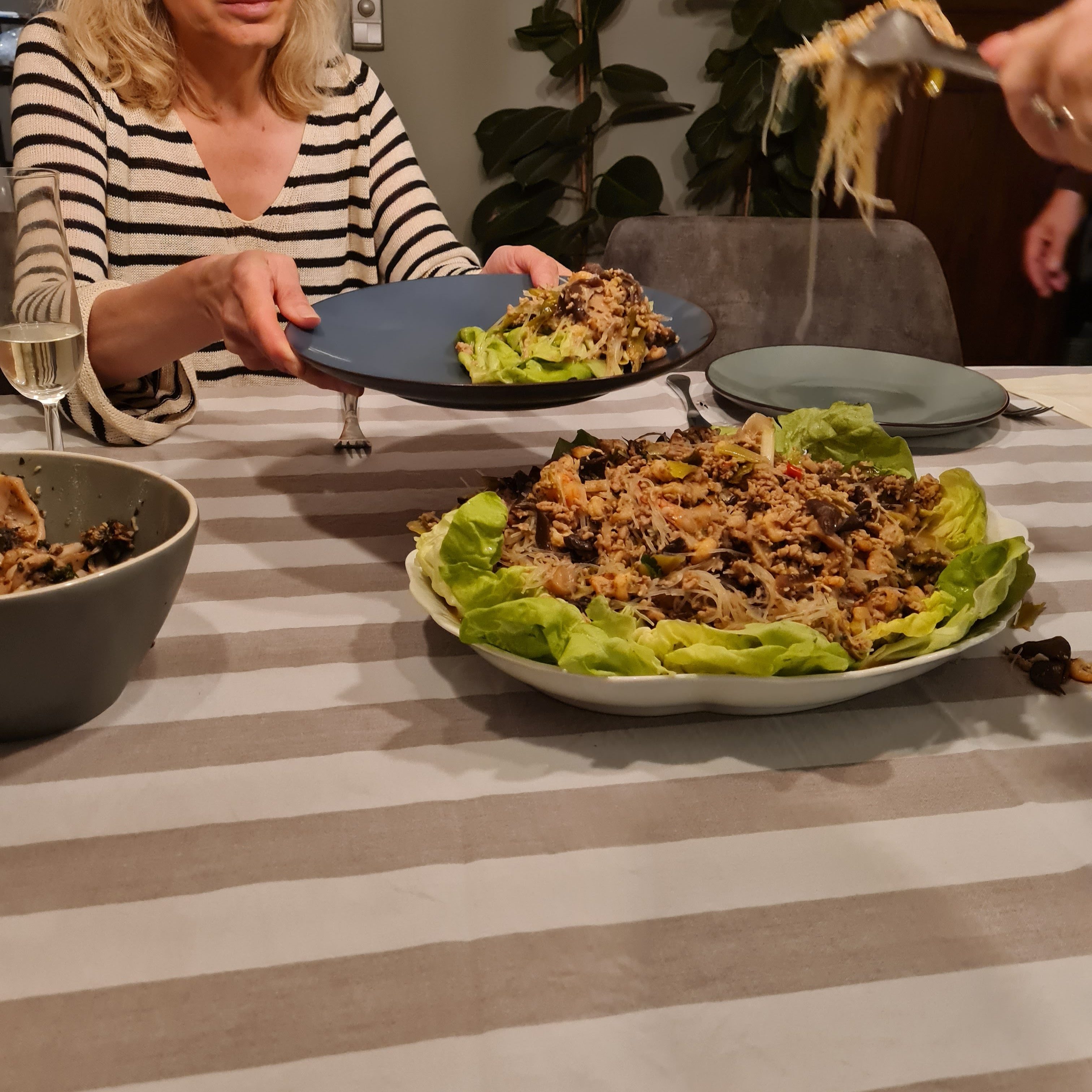 De laatste dagen ben ik buiten adem, en dat is redelijk vervelend. Ik weet ook niet of het een bijwerking is van de medicatie of een symptoom van de ziekte die erger wordt. Ik weet ook pas eind november of de huidige medicatie haar werk blijft doen. Mijn moeder wijst mij er op dat ik ben aangekomen en dat is waar en onhandig voor iemand die zo al moeite heeft met stappen en bewegen. Mijn verlangen naar zoet is zonder twijfel compensatie voor wat er zoal in mijn hoofd omgaat in combinatie met de appetijtopwekkende cortisone en as we speak heb ik als onbijt een volwaardig slagroomtaartje verorberd dat ik mee naar huis kreeg van het dinertje van gisteren. Want ah, dat was er wel. Ik vertelde hier ergens eerder dat een vriendin uit Den Haag in Nederland mij wilde opzoeken. Wat gisteren dan gebeurde, maar dan bij de Caruso’s die er een volwaardige avond met heerlijke spijzen en conversatie van maakten.